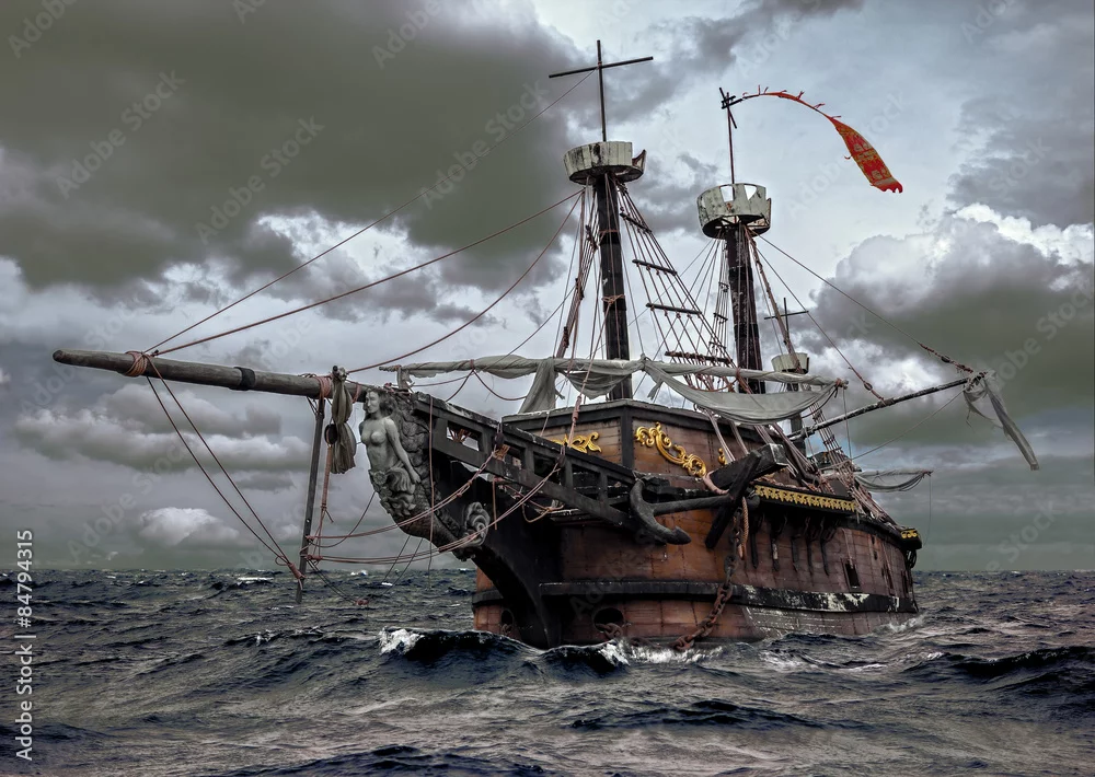 Fototapeta Opuszczony statek na morzu - statki - Picturewall.pl