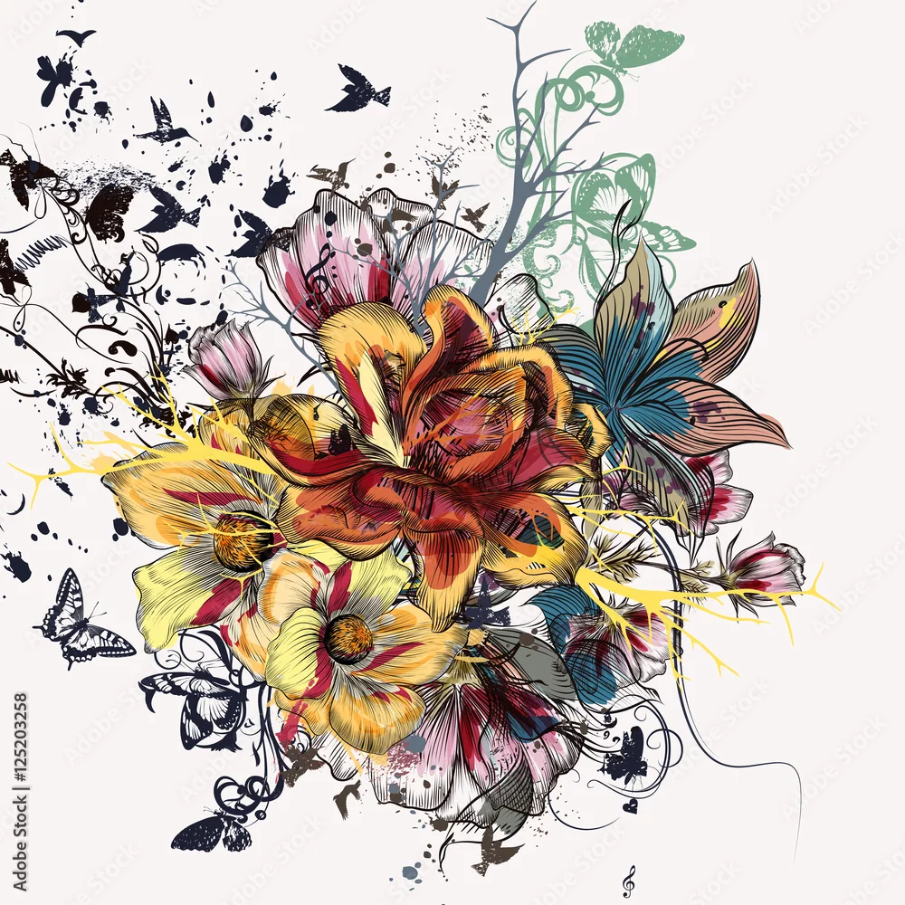 Fototapeta Tło z kolorowych ręcznie rysowane kwiaty