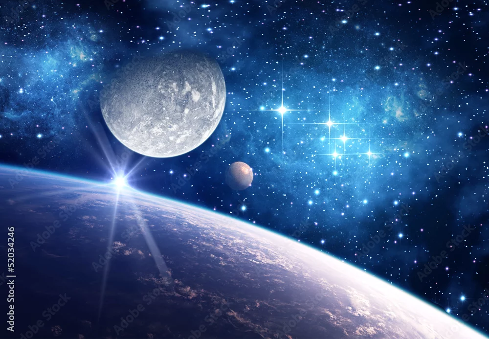 Fototapeta Tło z planetą, księżycem i gwiazdą