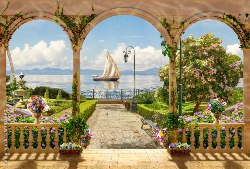 Fototapeta Beautiful sea view. Photo wallpapers for printing, Murals. Wallpaper on the wall. 3d image.