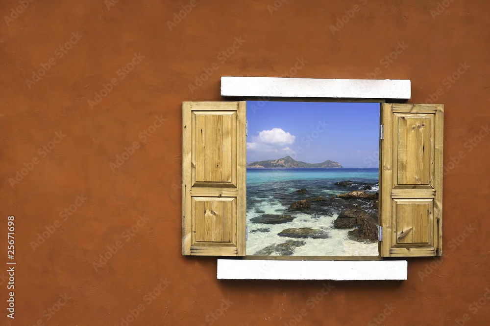 Fototapeta Okno z widokiem na morze. - widok z okna - Picturewall.pl