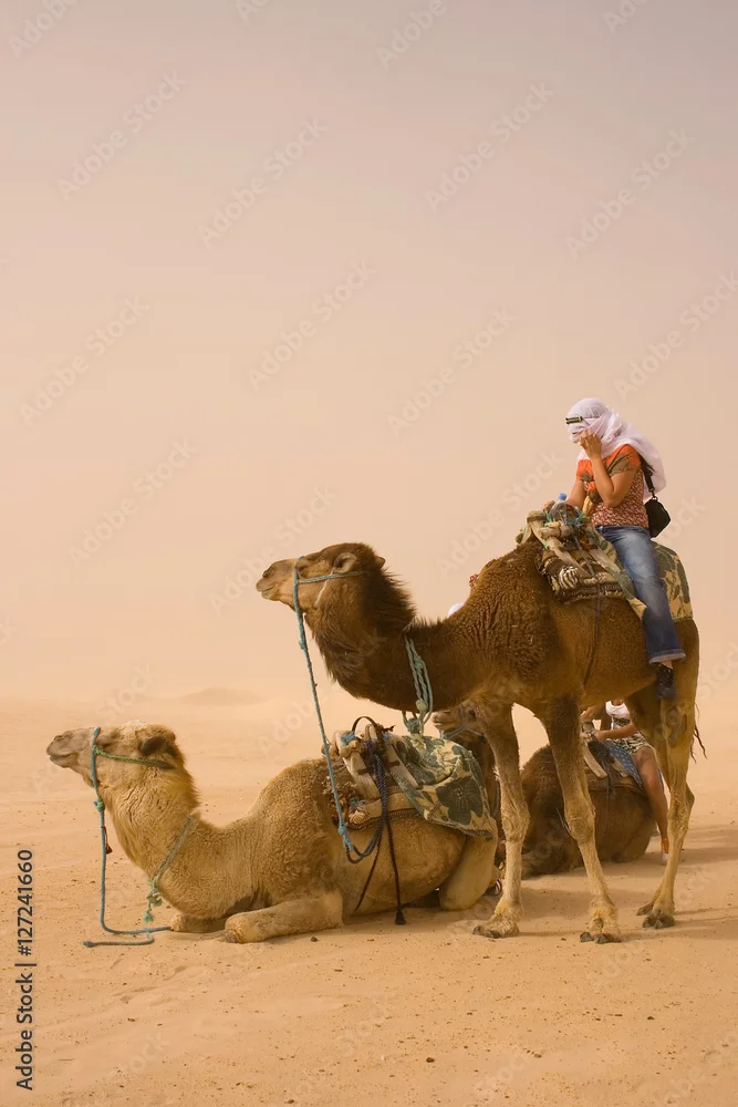 Fototapeta Burza piaskowa - wielbłądy - Picturewall.pl