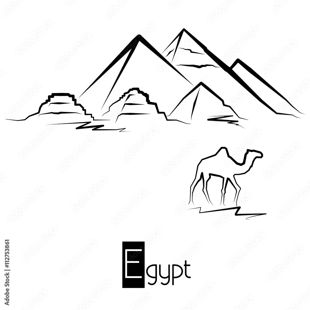 Fototapeta Egyptian pyramids - wielbłądy - Picturewall.pl