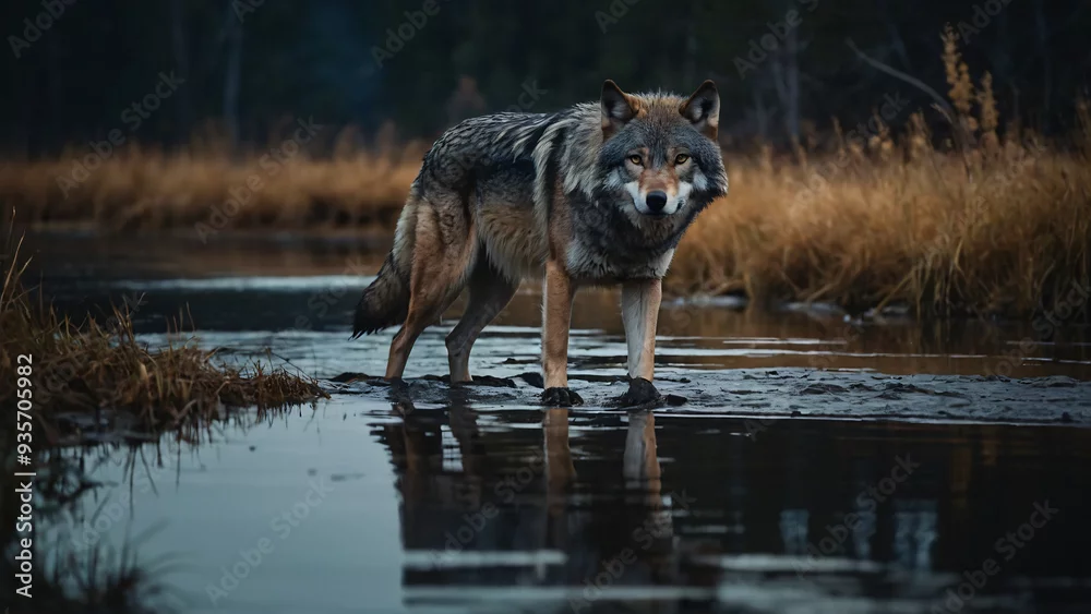 Fototapeta Wilk w naturalnym środowisku. Generative AI.