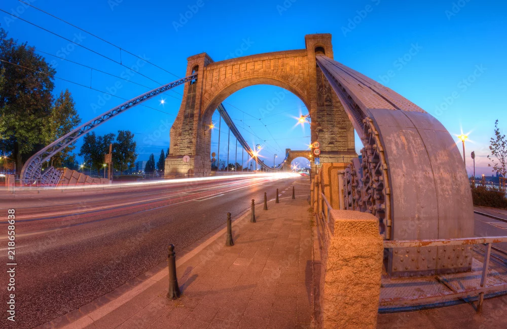 Fototapeta Most Grunwaldzki w nocy. Jedna z atrakcji miasta. Wrocław.