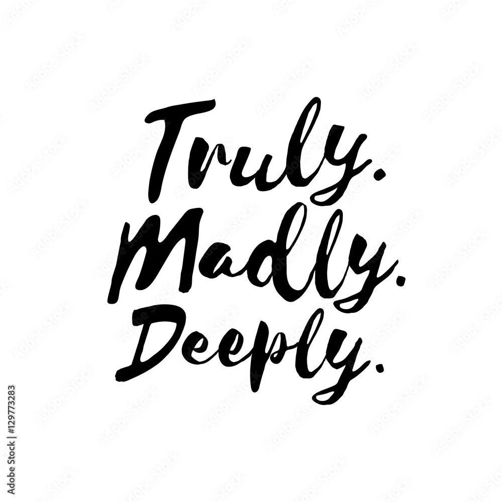 Fototapeta Naprawdę. Bezrozumnie. Głęboko. - Inspirujący cytat z mądrości napisany ręcznie czarnym tuszem i pędzlem. Dobry na plakaty, koszulki, nadruki, karty, banery. Strony napis, element typograficzny dla swojego projektu