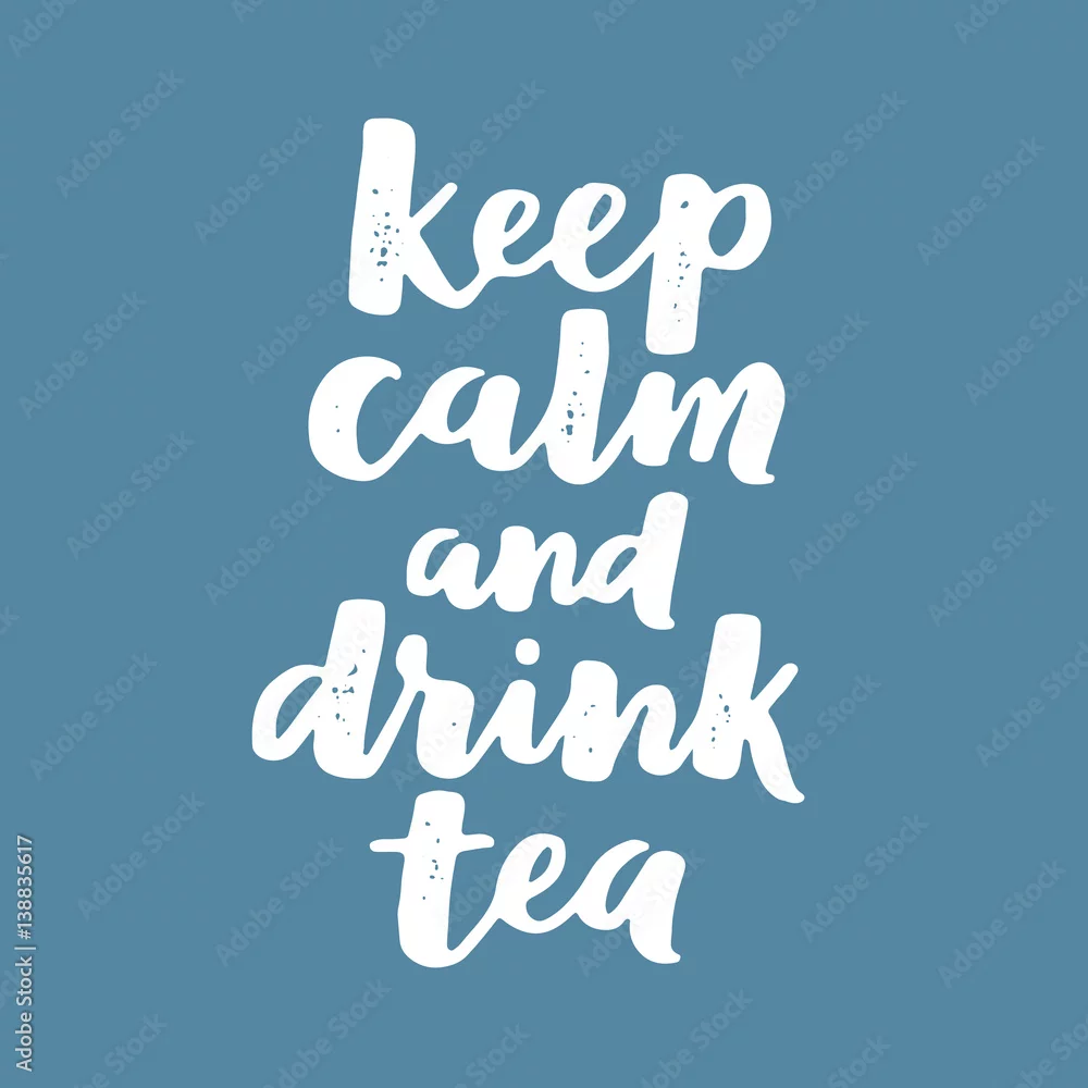 Fototapeta Wektor odręczny cytat o herbacie. Pędzel na papierze dla swojego projektu, plakatu, karty z pozdrowieniami lub innego. Zachowaj spokój i napij się herbaty.