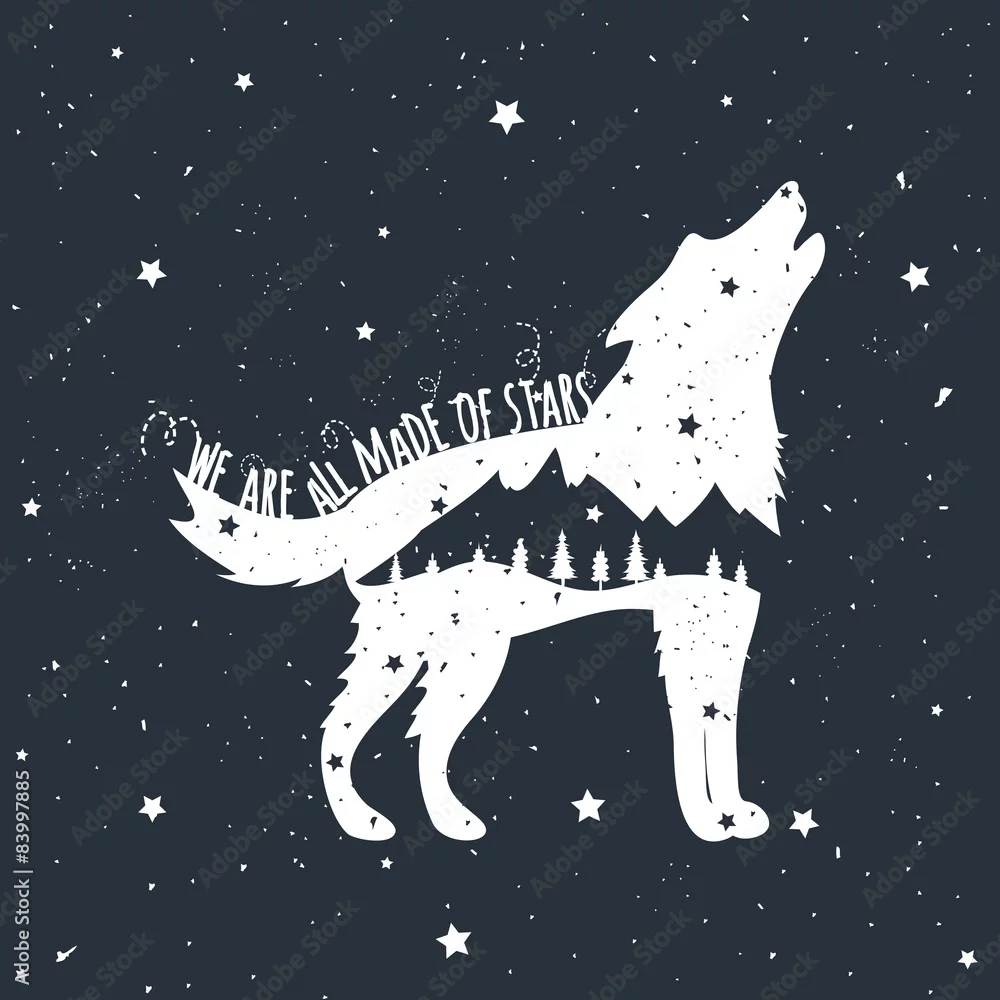 Fototapeta Wektorowa ilustracja z wycie wilka, gór i drzew