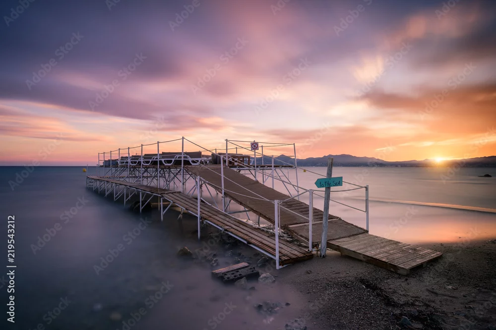 Fototapeta zachód słońca wokół molo (cannes) - zachód słońca - Picturewall.pl