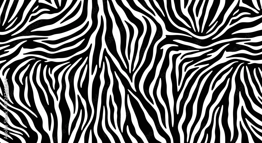 Fototapeta A close-up, seamless black and white zebra stripes animal print pattern, creating a bold and abstract textured background.