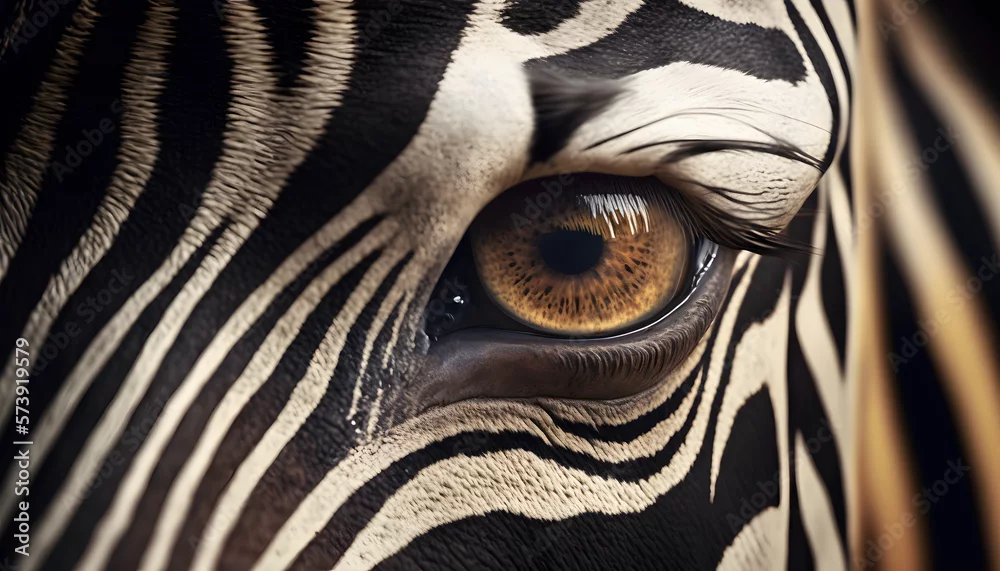 Fototapeta close-up on the zebra's eye. look of a zebra, zebra eyes, generative ai