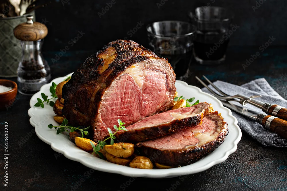 Fototapeta Prime rib roast sliced for celebration dinner - zebry - Picturewall.pl