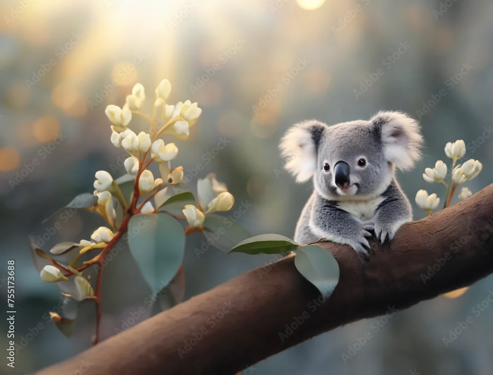 Fototapeta słodka mała koala odpoczywająca na drzewie