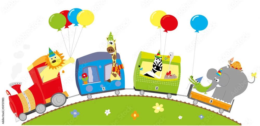 Fototapeta Wesoły pociąg urodzinowy- zwierzęta i balony
