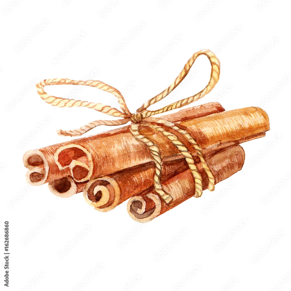 Naklejka na ścianę Akwarela pachnący laska cynamonu obrazu. Ikona ilustracja cynamon na białym tle. Ręcznie rysowane akwarele ręcznie rysowane przedmioty żywności