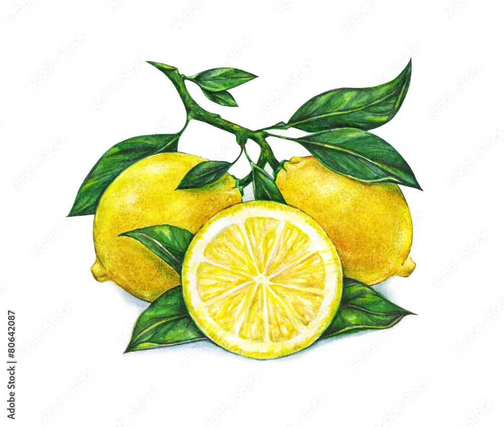 Naklejka na ścianę Akwarela, rysunek cytryny