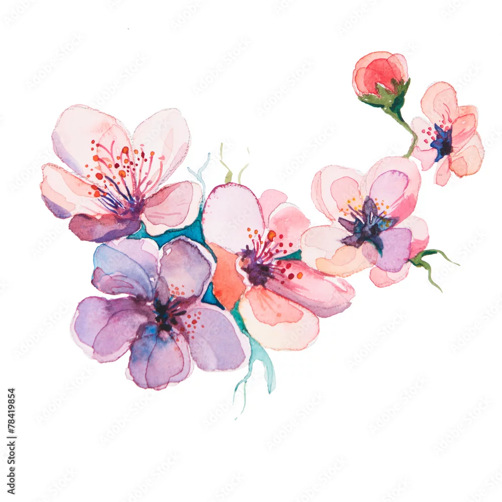 Naklejka na ścianę wiosenne kwiaty akwarele na białym tle