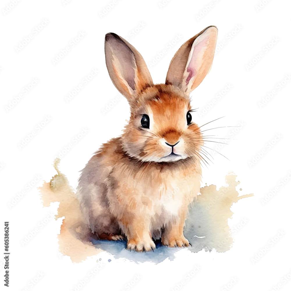 Naklejka na ścianę Watercolor little rabbit isolated on transparent background. Generative AI