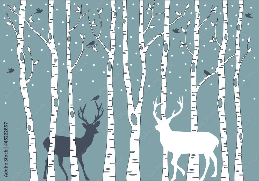 Naklejka na ścianę brzozy z jelenia, tło wektor