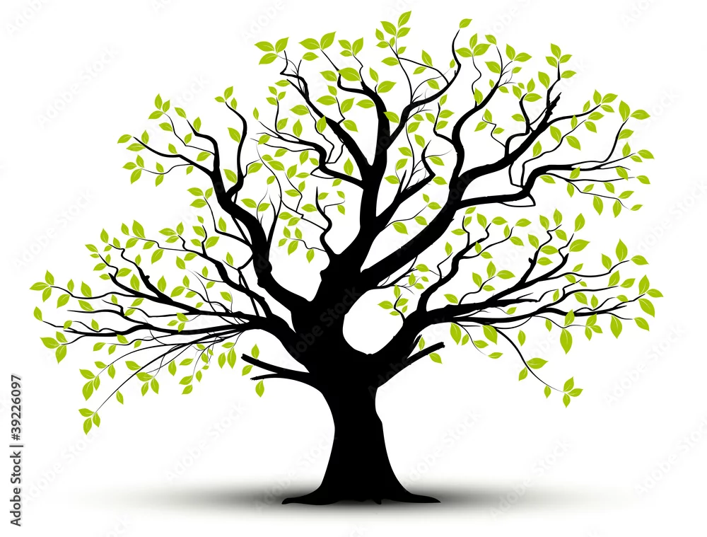 Naklejka na ścianę wektor zestaw - dekoracyjne drzewa i zielone liście