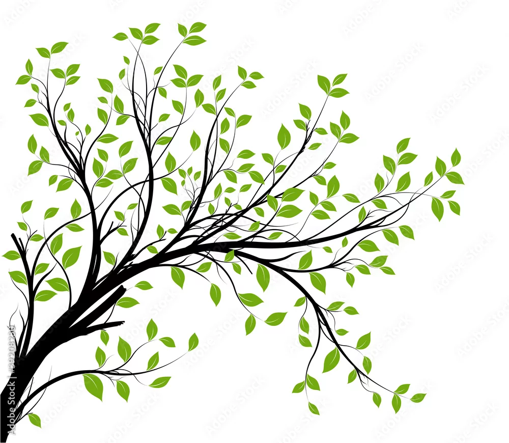 Naklejka na ścianę wektor zestaw - zielona gałąź dekoracyjna i liście