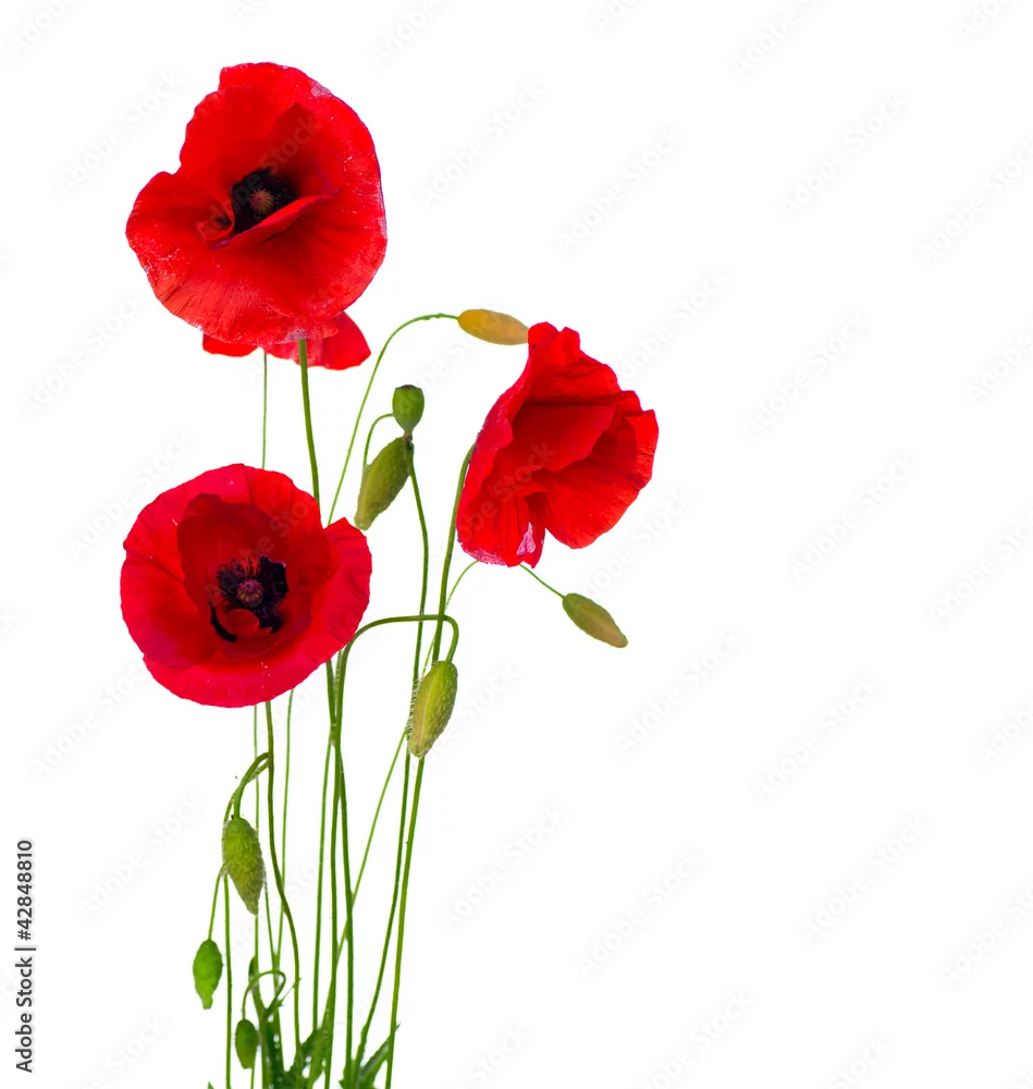 Naklejka na ścianę Czerwony Makowy kwiat Odizolowywający na Białym tle