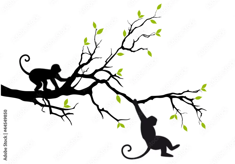 Naklejka na ścianę małpy na drzewie, wektor - do przedpokoju - Picturewall.pl