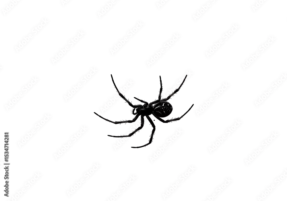 Naklejka na ścianę Dark spider with spiky legs positioned centrally against a black backdrop