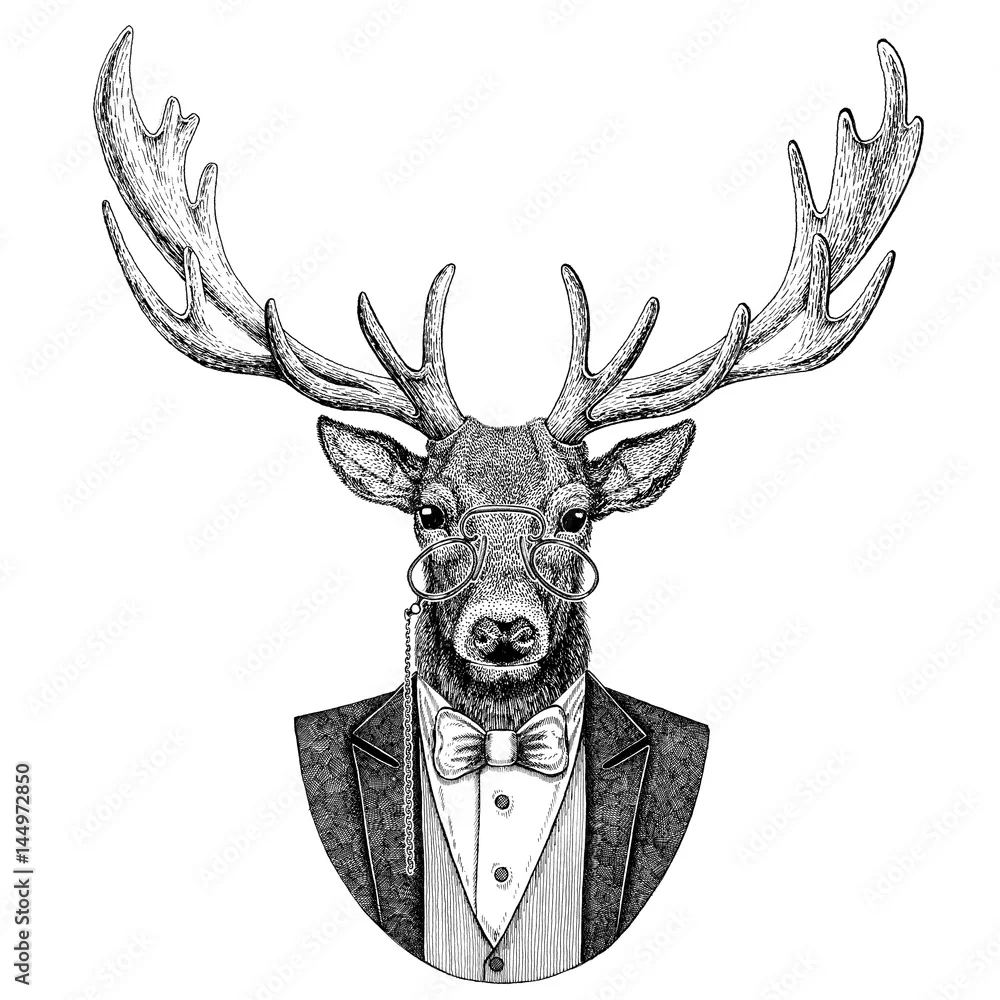Naklejka na ścianę Deer Hipster zwierząt Ręcznie rysowane ilustracja na tatuaż, godło, znaczek, logo, naszywka, t-shirt