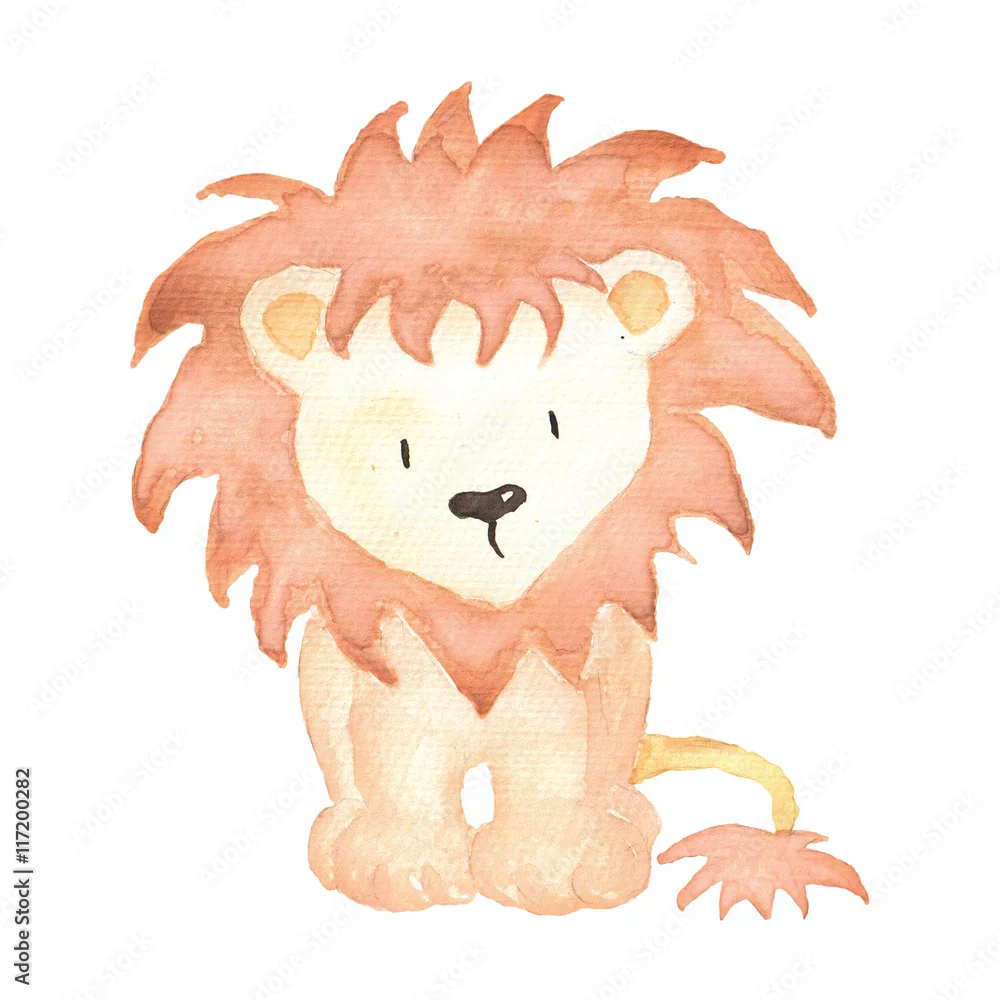 Naklejka na ścianę Lew akwarela ręcznie malowane ilustracja na białym tle słodkie zwierzęta małe dziecko