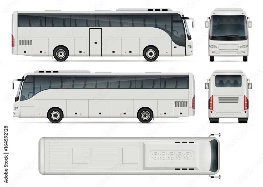 Obraz Szablon wektor autobus dla marki samochodów i reklamy. Odosobniony powozowy autobus ustawiający na białym tle. Wszystkie warstwy i grupy są dobrze zorganizowane, co ułatwia edycję i ponowne kolorowanie. Widok z boku, przodu, tyłu, góry.