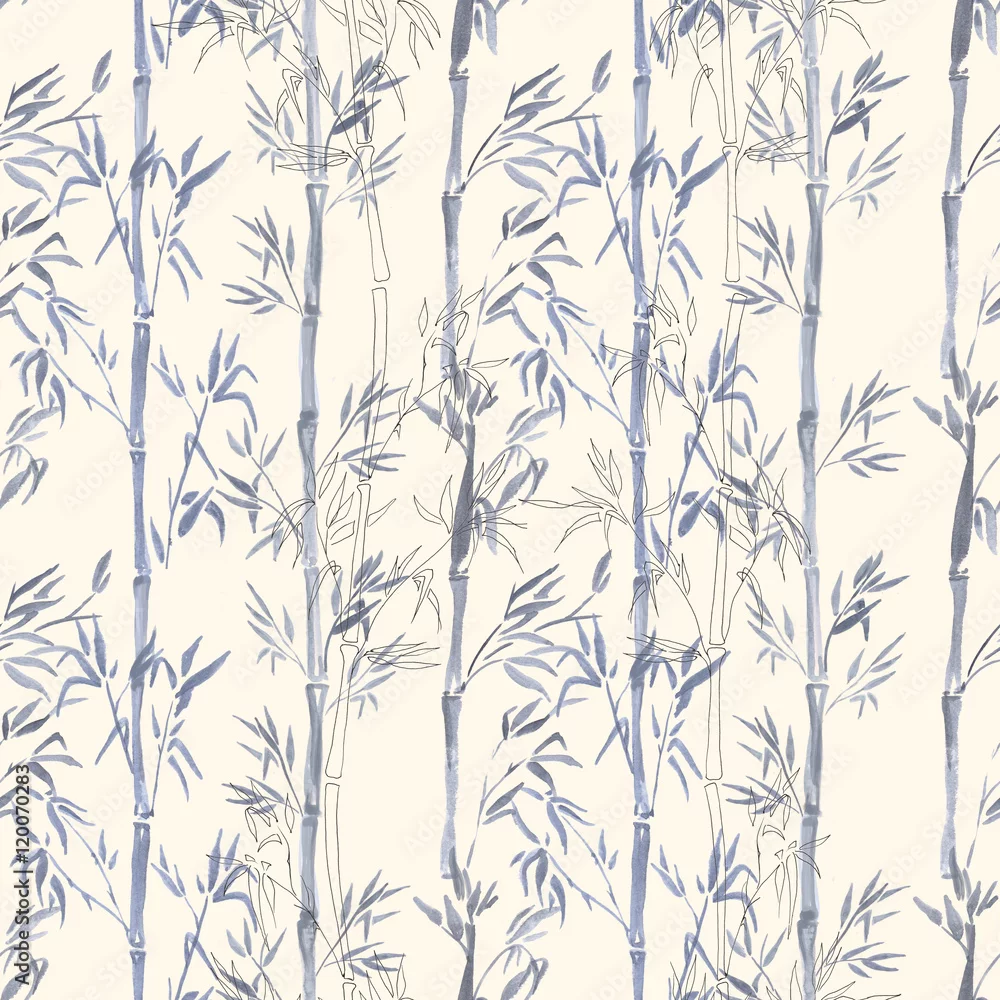 Obraz Ręcznie rysowane akwarela bezszwowe wzór z rysunku roślin bambusa. Powtarzające się tło z bambusa
