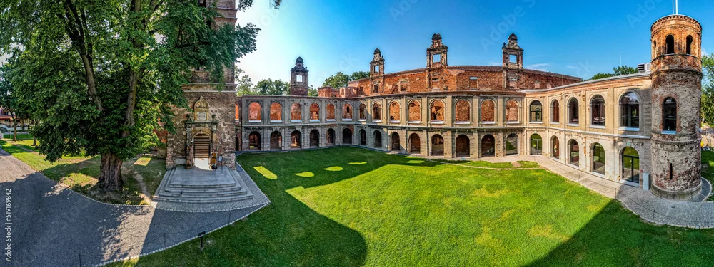 Obraz Tworków, ruiny zamku na Śląsku w Polsce, panorama z lotu ptaka