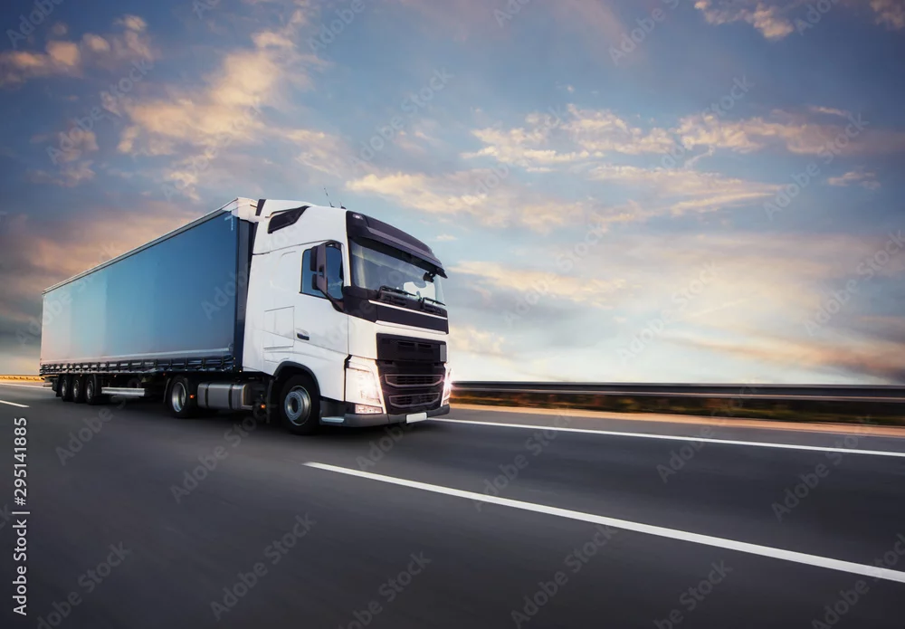 Obraz Europejski pojazd ciężarowy z dramatycznym światłem słońca