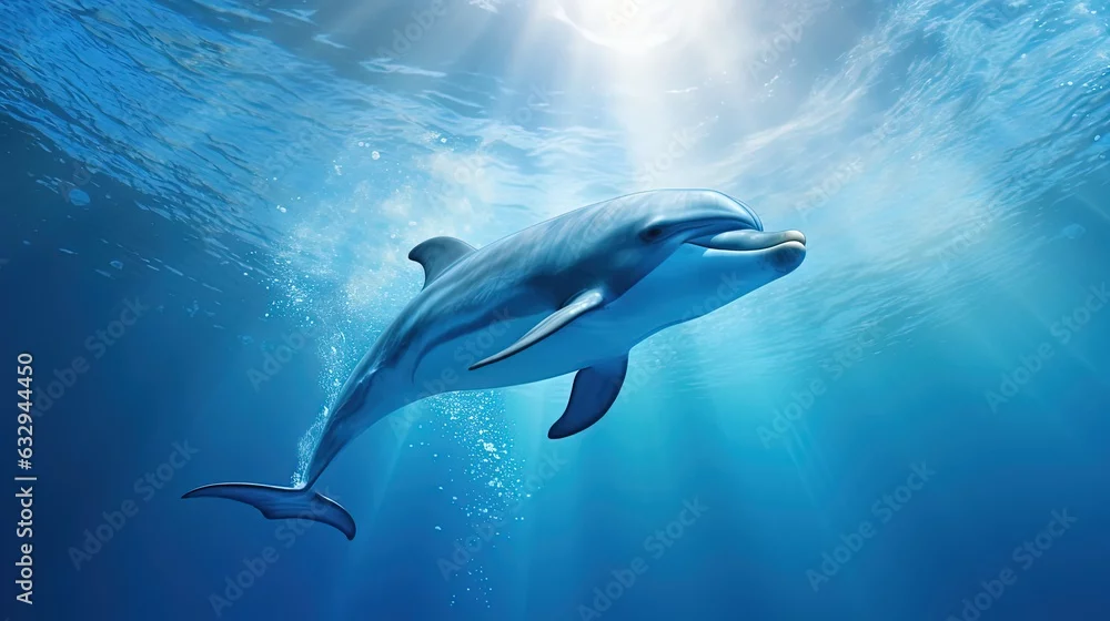 Obraz illustration of dolphin swimming under clean blue ocean water idea concept for environment preservation, Generative Ai