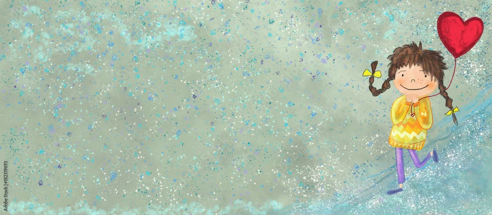 Obraz Dziewczyna i serce Malowanie na płótnie. Bacground - dla dziewczynki - Picturewall.pl