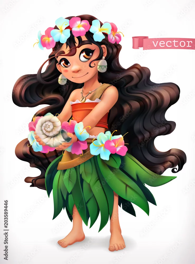Obraz Mała dziewczynka z muszelką. Zabawny charakter 3d wektor ikona
