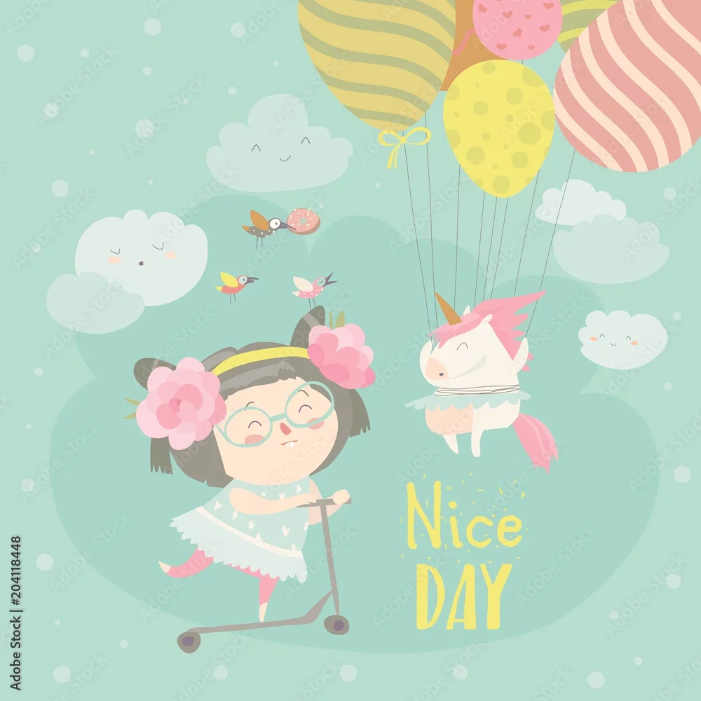 Obraz Śliczna dziewczyna z jej małym jednorożec