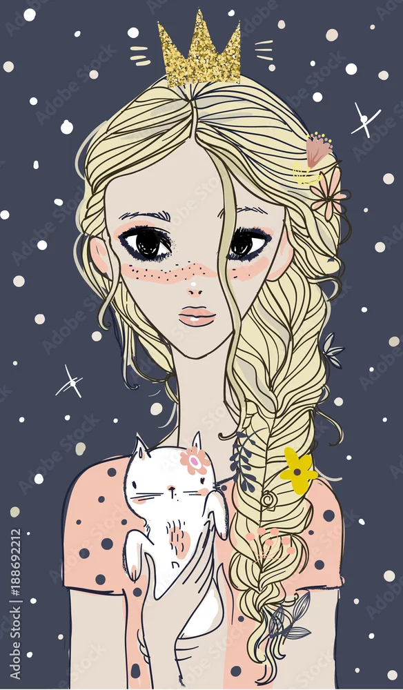 Obraz śliczna dziewczyna z kotem - dla dziewczynki - Picturewall.pl