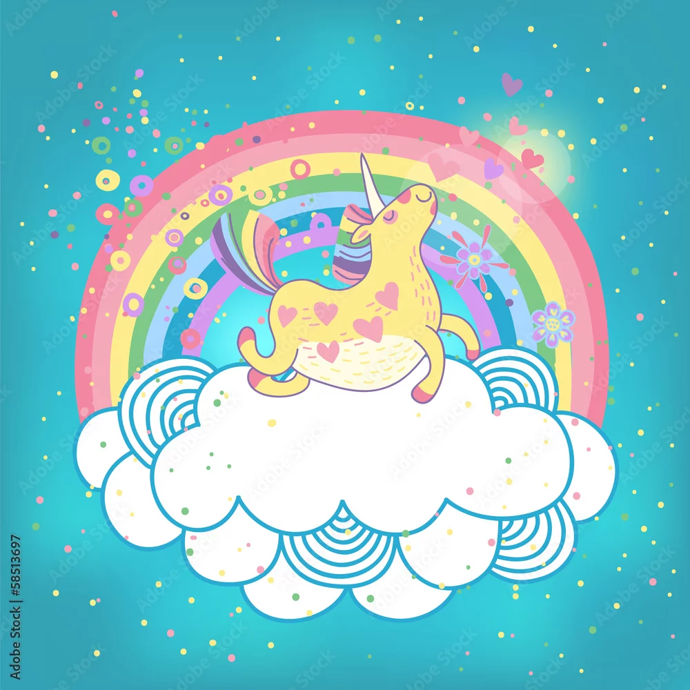 Obraz Tęcza jednorożca w chmurach - dla dziewczynki - Picturewall.pl