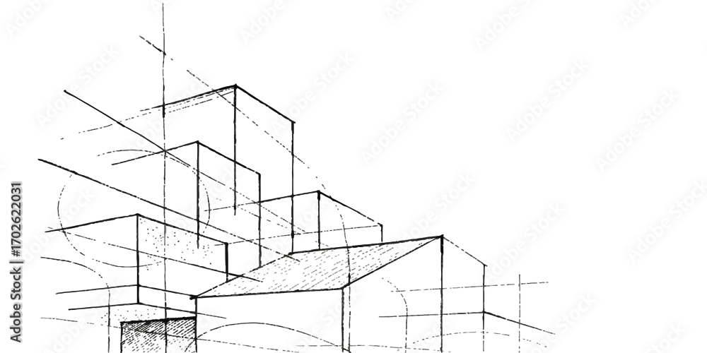 Obraz Abstract architectural blueprint of a building structure with white lines - do architekta - Picturewall.pl