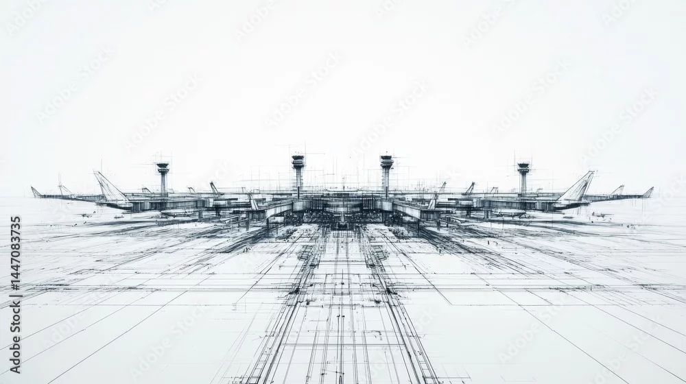 Obraz Abstract architectural design of an airport featuring terminals and runways with a focus on structure - do architekta - Picturewall.pl
