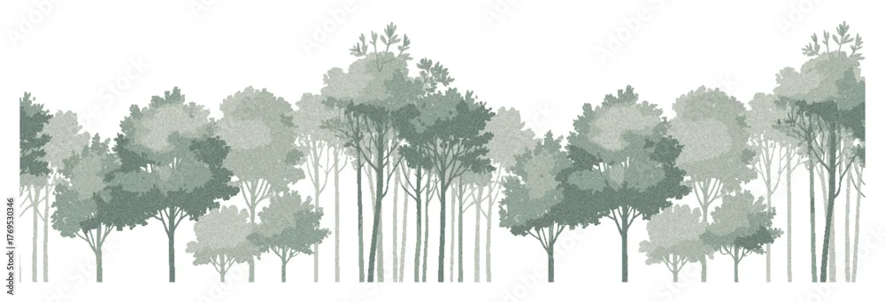 Obraz Architectural vector illustration of minimal CAD trees and wetland forest outlines, side-view line drawing elements for professional landscape design, garden planning, and elevation presentations.