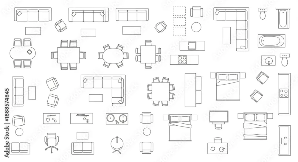 Obraz Collection of architectural floor plan drawings of furniture and rooms. - do architekta - Picturewall.pl