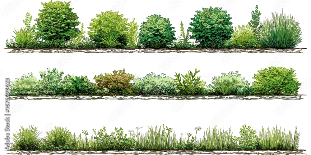 Collection of green trees pine and deciduous forest trees, Vector illustration of an architectural tree for landscape vector design on transparent background
