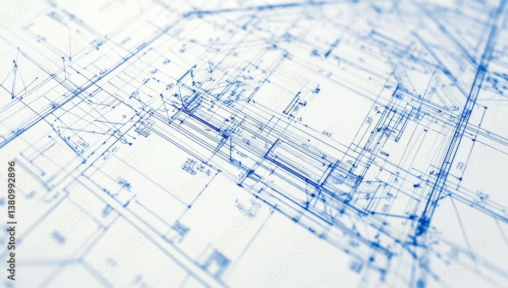 Obraz Detailed architectural blueprints of house plans, on white paper