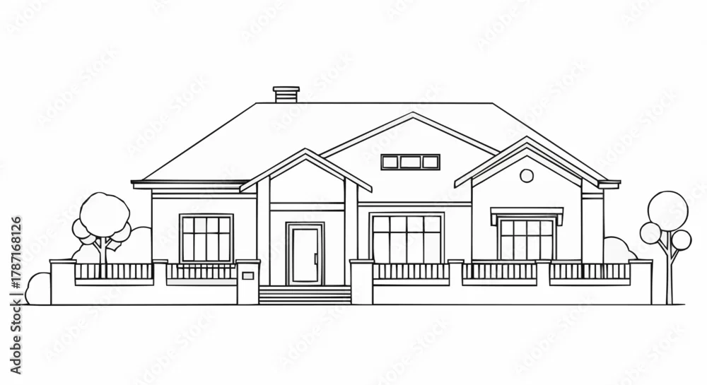 Obraz Detailed architectural drawing of a residential house with a classic design and structure.