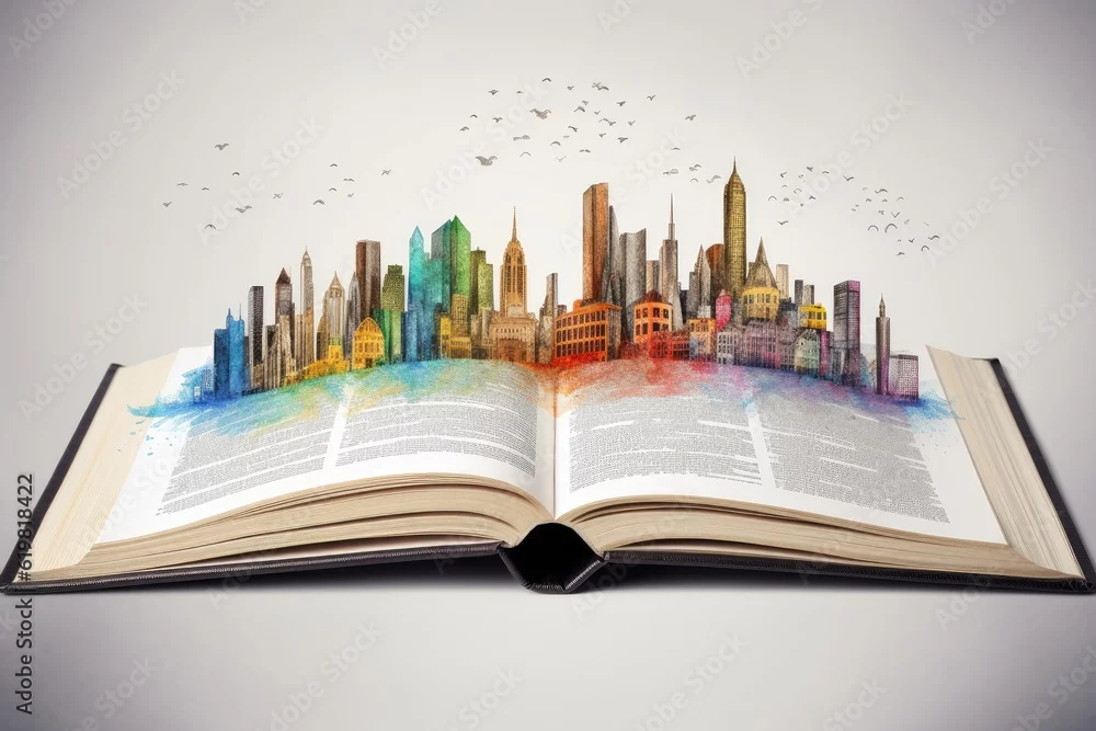 Obraz Illustration of a colorful modern city on an open book. - do architekta - Picturewall.pl