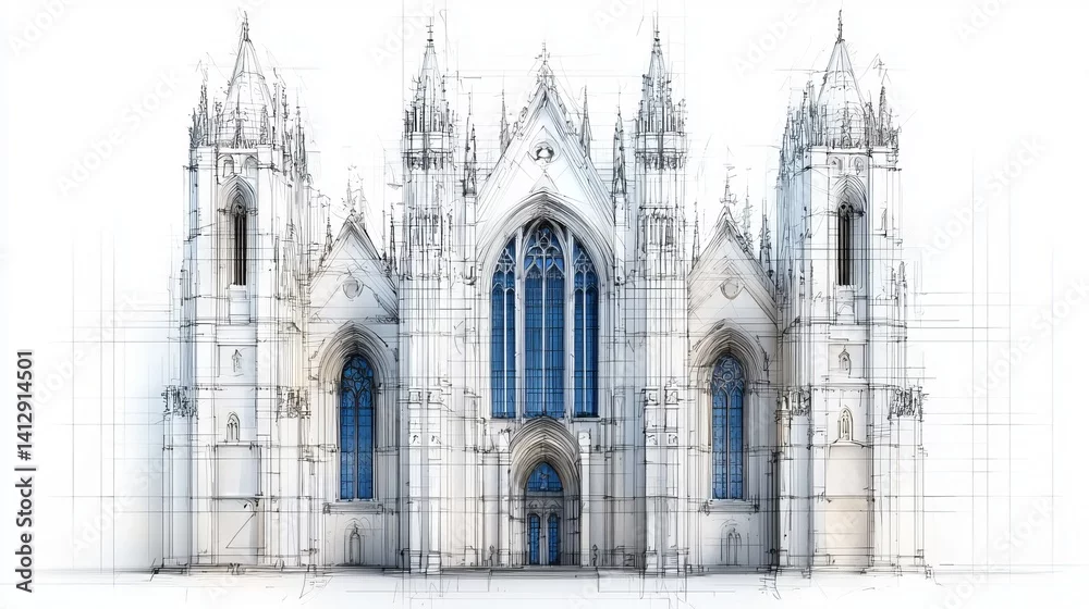 Obraz Intricate architectural design of a Gothic-style cathedral, featuring detailed spires and elegant arches.