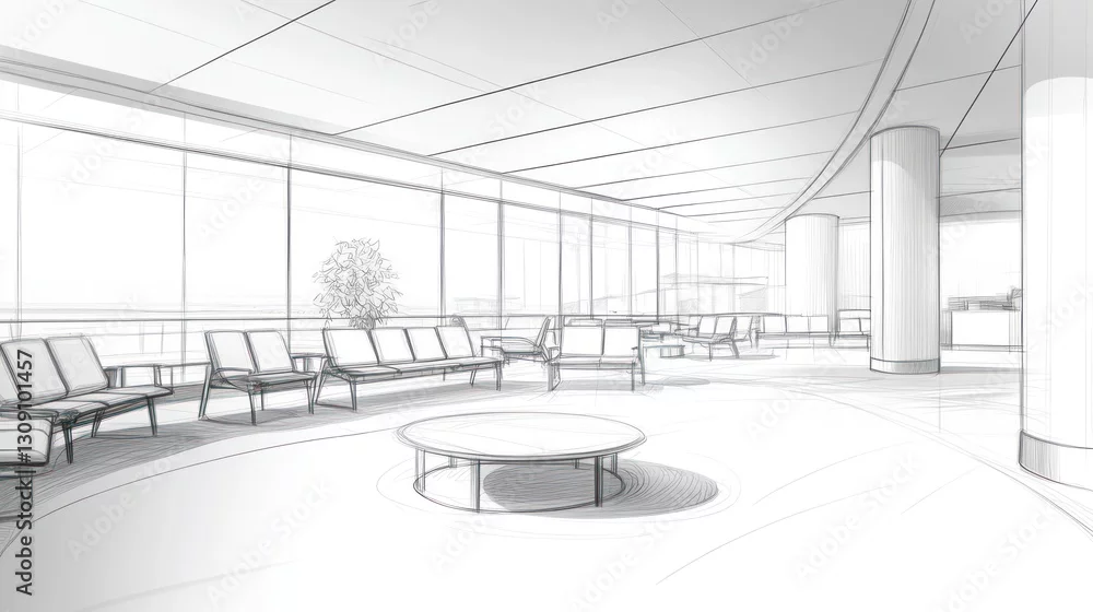 Obraz Modern waiting area architectural sketch, interior design concept - do architekta - Picturewall.pl